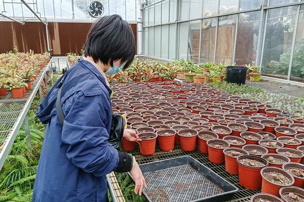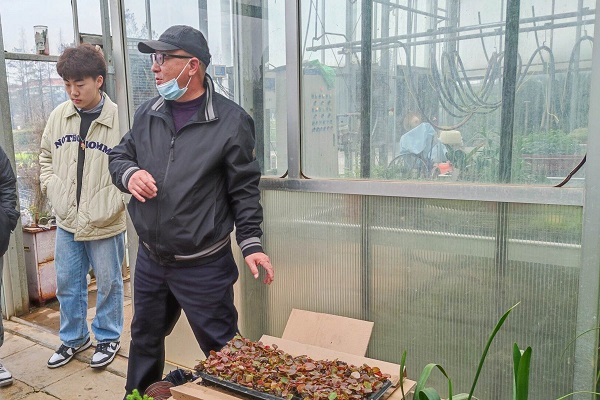 种植结束后,志愿者们将海棠苗搬运到大棚内,将盆栽规整地放置在床架上,本次活动也告一段落。而对于大多数第一次走入大棚的志愿者们,王文恩老师热情地讲解了大棚的构造,并带领志愿者参观了花卉基地的设施,让志愿者们初步了解了自己未来学习的场所。