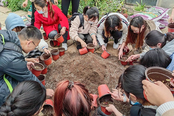 3月22日上午,张瑜服务队组织志愿者前往花卉基地进行海棠苗上盆志愿服务活动,帮助花卉基地开展教学、科研工作。活动一经发布便受到了同学们的欢迎,吸引了来自园林、景园、茶学等不同专业的30位志愿者积极参加。