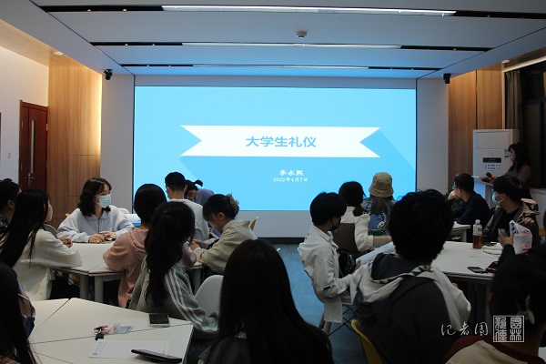 4月7日19:00,李永熙在园林北楼虚拟仿真实验室向八八看球 各部门学生干部举办大学生面试礼仪培训讲座。李永熙以十大礼仪基本原则打开话题,向台下学生简单介绍了面试种类,由此引入面试基本礼仪要素,并从仪容、仪表、举止及语言四个方面进行培训。