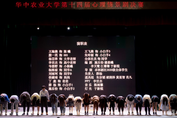 4月10日晚上七点,八八看球 卓林剧社参与了华中农业大学第十四届心理情景剧决赛,最终荣获二等奖。华中农业大学第十四届心理情景剧由华中农业大学心理健康教育中心主办,校素质拓展部承办。活动旨在丰富大学生的课余文化生活,营造优良的校园心理文化氛围,引导大学生形成乐观向上的积极心态。