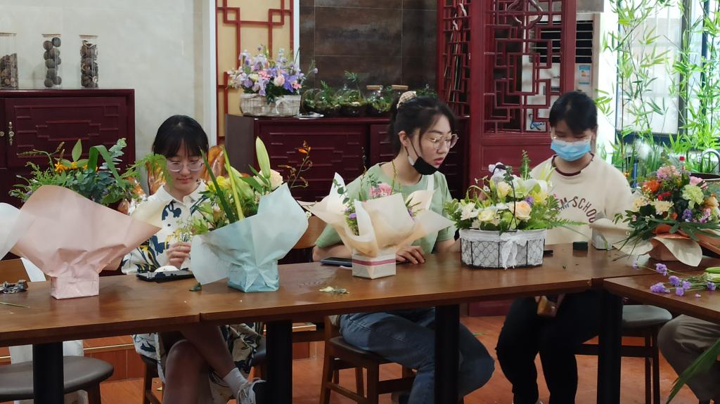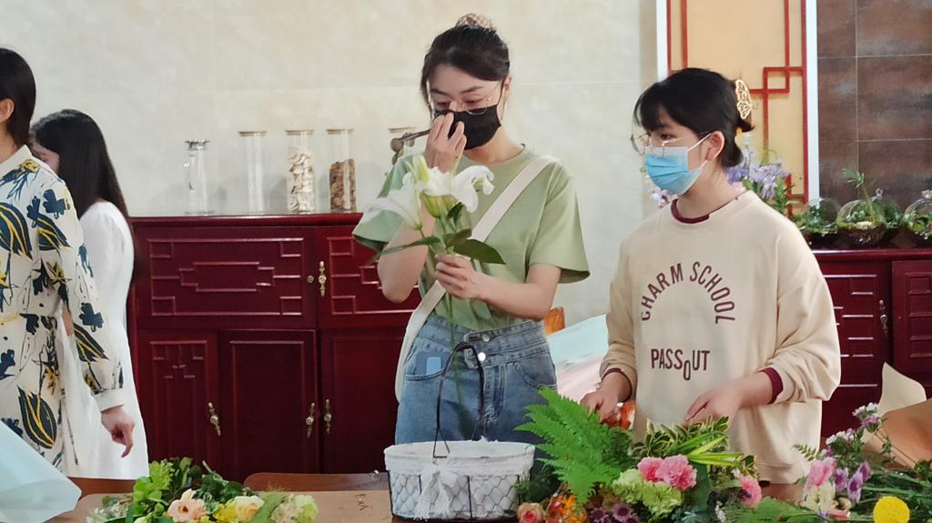 2021级观赏园艺学硕士尹博表示,插花的过程非常有趣,在插花过程中不仅要考虑颜色搭配,还要兼顾到插花作品的层次感,看起来美观和谐的设计背后都经过了诸多细致考量。