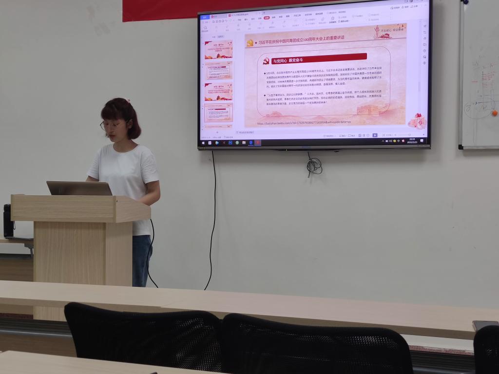 支部还组织学习了习近平总书记在庆祝中国共产主义青年团成立100周年大会上的重要讲话。在系统学习会议精神后,李可欣同志向同志们分享了自己在学习过程中感触比较深的“金句”。“追求进步,是青年最宝贵的特质,也是党和人民最殷切的期望。”习近平总书记的讲话让在座同志们深刻认识到自己作为新时代青年所肩负的责任与使命。“志存高远方能登高望远,胸怀大志才可大展宏图。”习近平总书记激励广大青年志存高远,努力奋斗,殷殷嘱托让党员同志们人心振奋,进一步明确了自己的奋斗目标。