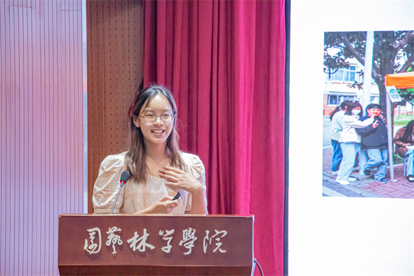 园林2101班学班缪楚涵以“夜空中最亮的星”为主题,讲述了自己与园林2101班相识相伴的过程。从被尊称“您”的学姐到大家的好朋友“喵喵姐”,缪楚涵和园林2101班的同学们在一点点的相处中逐渐变成了无话不谈的好朋友。她说:“你们像夜空中最亮的星,温暖了我。一年以来,我收到了很多心意。看着你们参加了很多活动,在志愿队、剧社、记者团、学生会、乐团等各个地方闪光,我感受到了你们的朝气蓬勃、热情洋溢、永不言弃、敢于尝试。我们一起告别了一些人,同时也迎来了一些人,爱与被爱的故事从未结束。”她表示,希望自己也能成为园林2101班同学心中”最亮的星”,她也相信她的”星星们”一定可以闪烁自己的光芒,去寻找属于自己的未来。