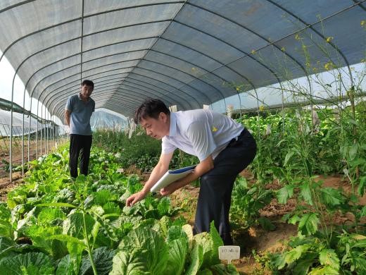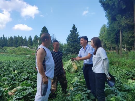 成员们来到海拔1600米的大垭村,团堡镇大垭村的驻村干部何平十分热情地招待了团队成员,带成员们参观了村里几个主要的蔬菜种植基地,并详细地介绍目前村里蔬菜发展的情况。大垭村种植的农作物包括当地品种利川山药、辣椒、黄瓜、大白菜、甘蓝、萝卜等,但主要靠利川山药实现增收,亩产可以达到6000斤。一般来说,低山种植的山药产量较高,而高山种植的山药品质则更好。农户种植的山药只是用一些竹竿做简单的支撑,而规模化的合作社则会使用稳定性更强的网架结构。大白菜根肿病是一种严重的土传性病害,会对大白菜的产量和品质造成不可逆的影响。在走访过程中,成员们同样发现了根肿病的普遍存在,然而,目前农民还无法解决这个问题。这就意味着,科研工作者应加快进行根肿病相关机理的研究,服务农业生产。