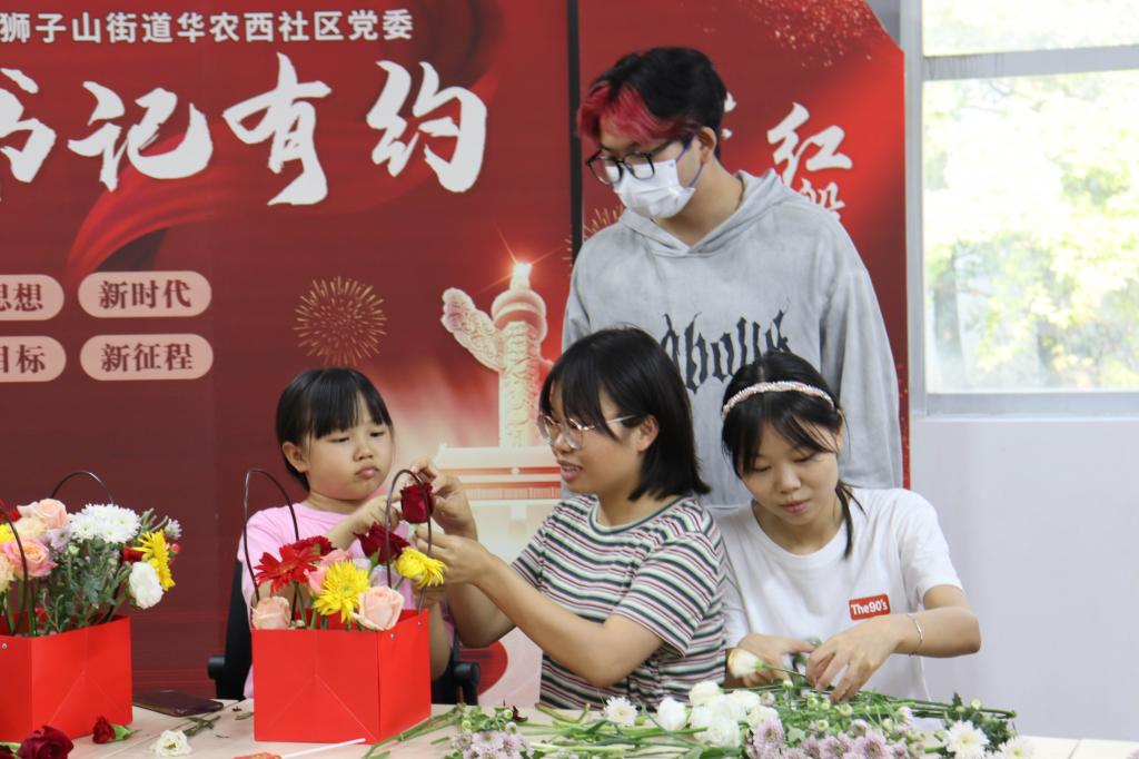 为了进一步激发小朋友们爱党、爱国的热情,丰富国庆假期生活,10月1日下午,张瑜服务队在华农西社区举办了“童心向党”国庆插花活动,以志愿红绘亮中国红,为祖国送上七十三周年华诞的美好祝福。