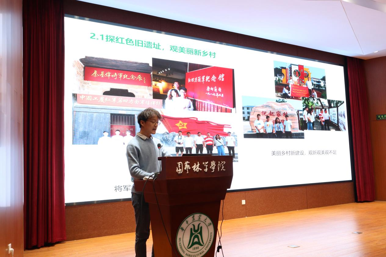 答辩中,每个团队都各具特色,同学们将社会问题与自身专业紧密集合。各组汇报内容精彩纷呈,形式多样,令人耳目一新。从对黄石阳新县当地自然环境、建筑等的拍摄,到9个传统村落资料的汇总;从对宜昌柑橘产业现状的调研,到其发展优势及制约因素的分析;从对一位位老共产党员的采访,到同学们亲笔绘下的书画作品,无一不体现了同学们的实干精神与暑期实践活动成果的丰硕。