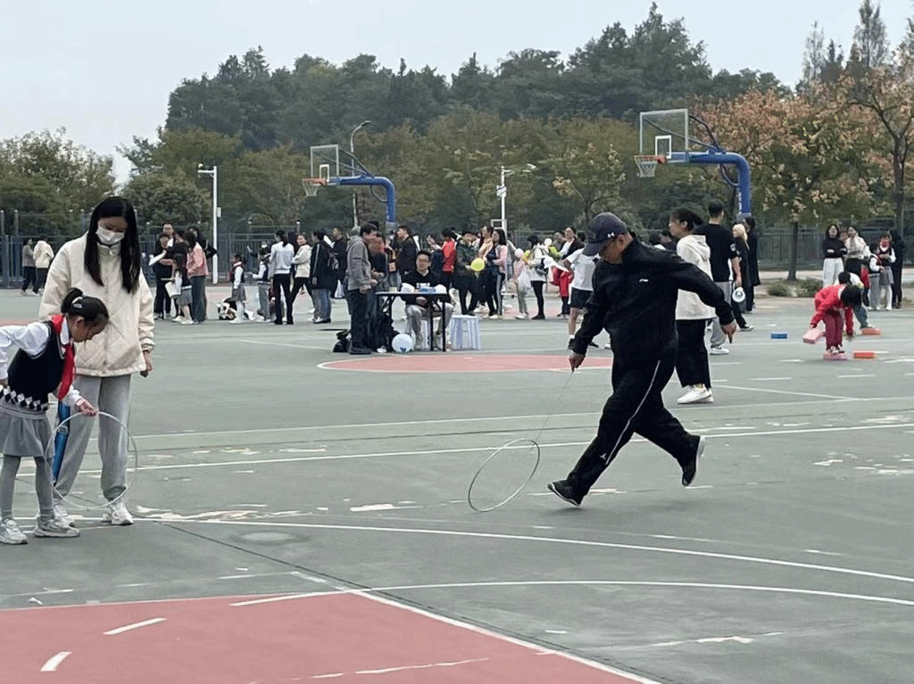 活动现场,一位奶奶带着女儿和外孙一起参与,三代人的童年在这一刻重叠,奶奶说如今的规则和游戏道具好像与她记忆里的不太一样了,但当她拿起铁钩的那一刻,一切又仿佛回到了过去。李召虎校长在尝试之后感叹道,好像回到了小时候。在现场玩了很久的两位同学被问及推铁环过程的感受时说道:“以前没有接触过这个游戏,刚开始觉得有点难不好玩,但练习了一会儿后就觉得很有意思,希望以后能带到班级和大家一起玩。”