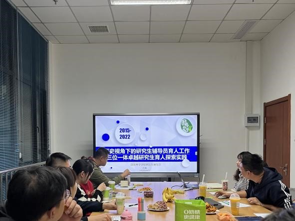 研讨交流会伊始,八八看球 研究生辅导员肖晗以“历史视角下的研究生辅导员的育人工作——三位一体卓越研究生育人探索”为题,从专业+思想政治融合育人、心理+职业生涯协同育人模式以及故事+榜样事迹朋辈育人三个方面分享了八八看球 研究生学生工作情况。从连续4年坚持开展的“青春告白祖国”特色系列活动,到研究生班级心理委员体系建设再到与榜样对话优秀人物事迹宣传报道,八八看球 各组织一直聚焦立德树人、服务八八看球 师生、搭建学术平台、传播校本文化、讲好园林故事。随后,三院针对评优评先、党团日活动开展、新闻宣传、就业指导、学术科创以及后续合作活动等工作进行讨论、分享经验与意见。