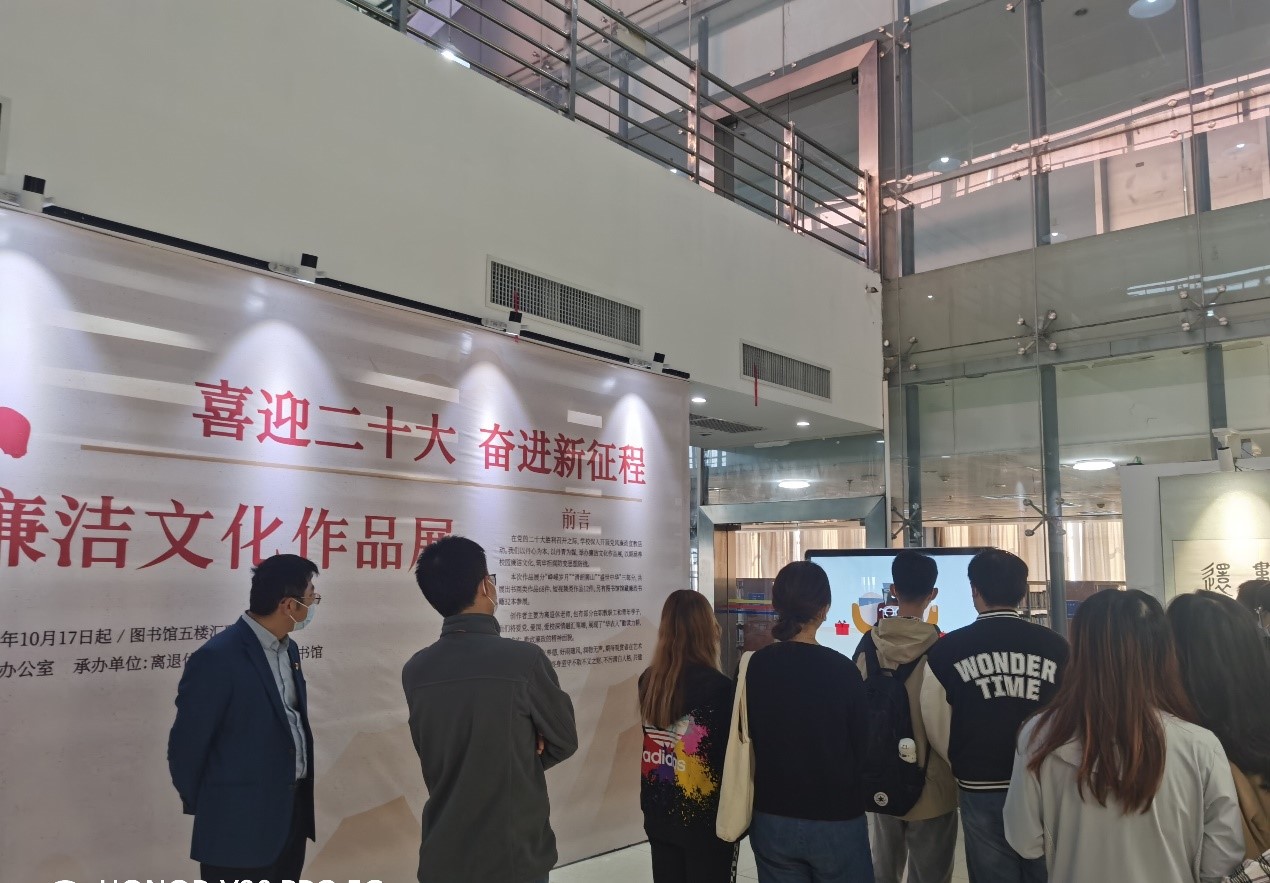 10月18日,风景园林研究生第二党支部组织支部党员同志来到图书馆汇雅书邨参观廉洁文化作品。整个展览分为三个部分:“峥嵘岁月”、“清朗狮山”、“盛世中华”,作品主要由退休老师,也有部分在职教职工和青年学子创作。一幅幅精美的书法、绘画作品,浓缩的是创作者的中国心、爱国情,展现的是新时代的廉政风气,更是在告诫新时代的年轻人要把廉洁,清正的品格融入到人格之中。