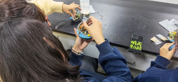 制作过程中,同学们恣意发挥自己对种植的理解,充分发挥了自身的美学创造性,并同时进行了一次与自然和植物的交流,缓解了他们心中对于期中考试周来临时深深的焦虑。随后,他们在便利贴上写下了对自己的祝愿,对未来的期望以及对生活的向往并将其粘贴在生态瓶上。