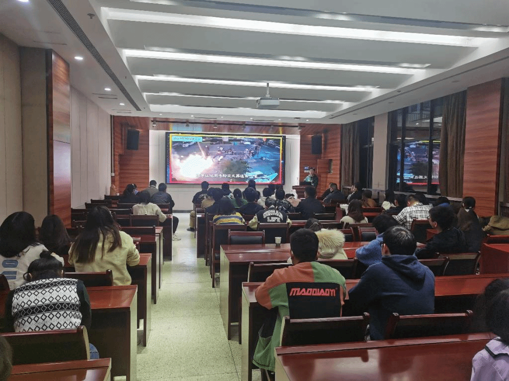 (21级果树学硕班班长带领同学一同观看宣传片)