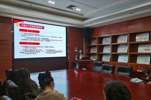会议伊始,王胜娟同志带领与会党员学习《中国共产党党徽党旗条例》相关内容,并对党徽党旗的使用管理、监督问责等内容进行了详细解读,教育引导党员同志们正确认识党徽党旗的深刻内涵和工作要求,自觉规范使用党徽党旗及其图案。