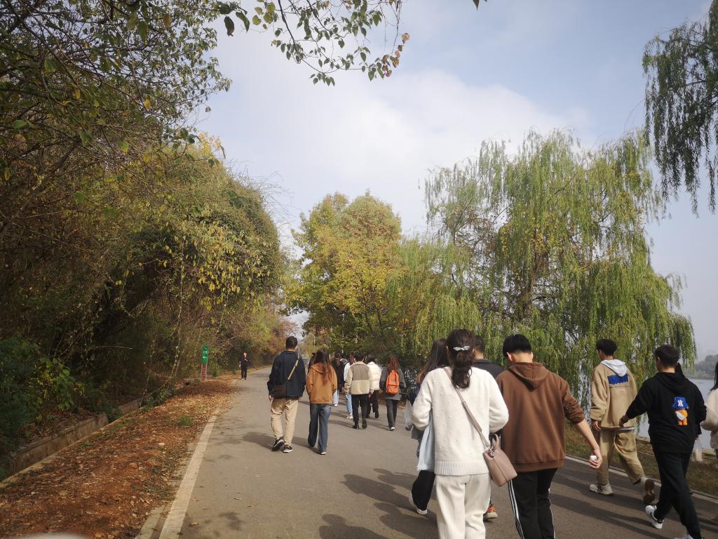 会议伊始,研究生辅导员肖晗老师引导大家总结11月工作并邀请同学们畅所欲言、自由分享。随后肖晗老师带领大家走进狮山绿道,一起感受暖阳,捕捉秋色。