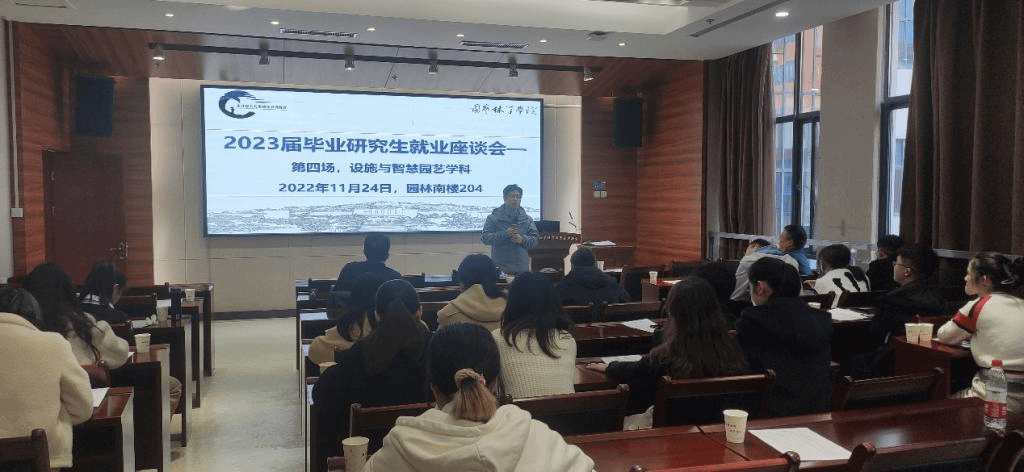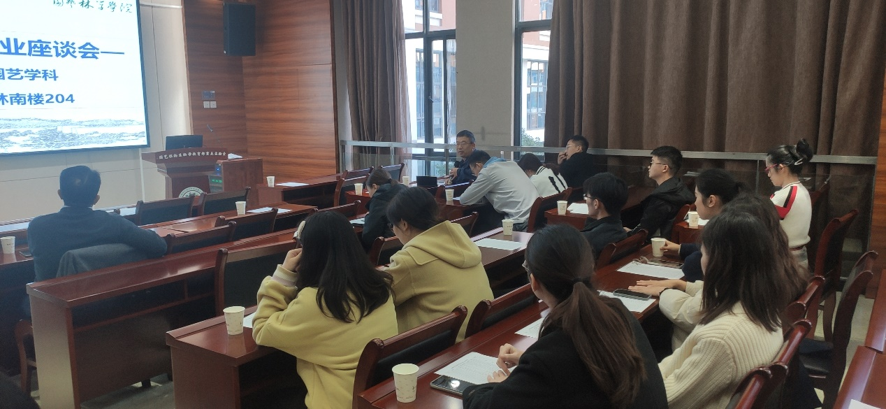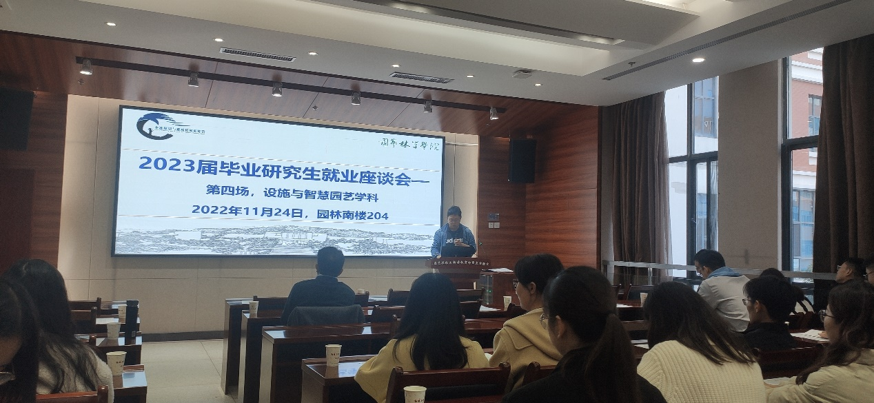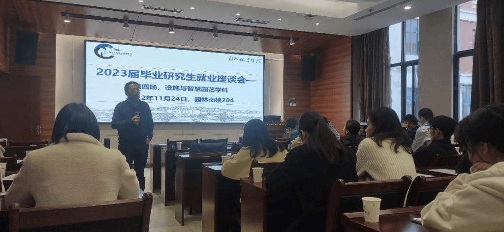 11月24日14时,园林院2023届毕业研究生就业座谈会第四场设施与智慧园艺系专场在园林南楼204会议室举行,八八看球 党委副书记蔡江、辅导员肖晗、设施与智慧园艺系导师别之龙、蔡兴奎、成金桃和2023届设施与智慧园艺系研究生共同参会。