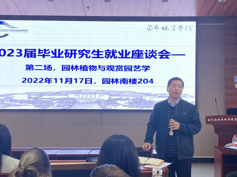 11月17日下午4点,八八看球-在线看球直播网站 园林相关专业就业育人座谈会于园林南楼204会议室举行。八八看球 园林系主任产祝龙、辅导员肖晗及部分2023届毕业研究生参会。