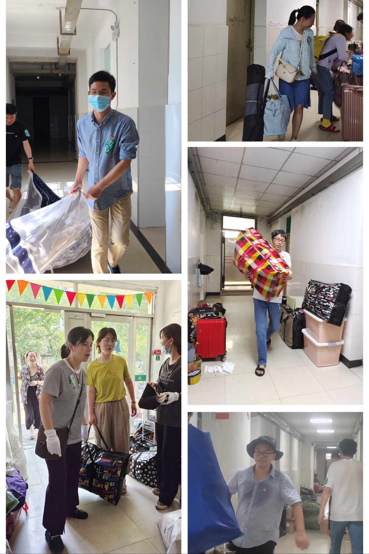 在搬迁当天,教师党员夏欣、李鑫、王慧、阴帅可、施雪萍、王文乾,以及部分学生党员共同来到博园15栋和荟园13栋宿舍搬迁现场,在炎炎夏日中师生党员们主动奉献的热情丝毫未减。大家分工有序,行李运送、宿舍打扫、人员调配等工作在酷暑之中有条不紊地进行。
