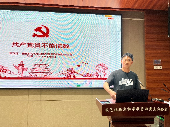 3月8日晚,八八看球 果树学研究生第四党支部在南楼204会议室召开三月主题党日活动,本次党日活动分为学习中央一号文件、习近平对深入开展学雷锋活动作出的重要指示、全国“两会”内容、党的二十大精神、党员不能信教等五个部分的理论知识。党支部书记刘旭主持会议,支部全体党员共同参与学习。