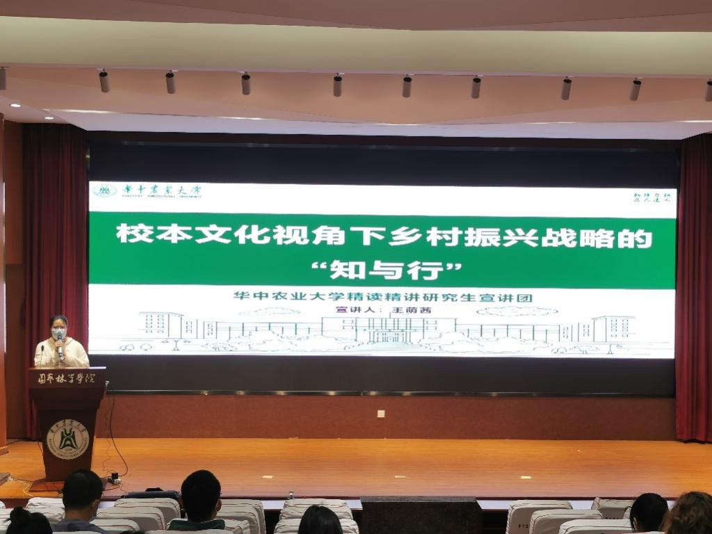 为进一步学习贯彻党的二十大精神,3月15日,在本科生“精读精讲”宣讲团成员王萌茜的带领下,2019级本科生于园林北楼228报告厅,学习了以“校本文化视角下乡村振兴战略的‘知与行’”为主题的报告。