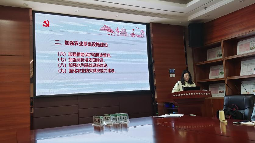 俞珺慈同志带领全体党员学习中央一号文件2023年中央一号文件是新世纪党中央连续出台的第20个“一号文件”。文件提出强国必先强农,农强方能国强;从九个方面33项具体内容部署了2023年全面推进乡村振兴重点工作。