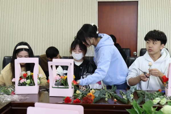 张瑜服务队的特色花艺活动受到了中国地质大学学生的广泛喜爱,作为张瑜服务队的负责人王湛宇向他们介绍到:“我们服务队正是以花艺为特色,开展大家喜闻乐见的志愿活动,让大家在参与活动的过程中陶冶情操、治愈心灵。”中国地质大学工程八八看球 张祉歆也表示期望两个学校有更多的特色活动交流。