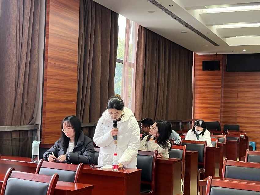 在毕业生分享交流环节,同学们就目前个人的就业、求职应聘、考公考编、职业规划等情况进行了简要的介绍,也提出了在择业、就业上存在的疑惑与问题,老师们结合自己的求职经历,从战略上解答了同学们的困惑,为处于迷茫中的同学进行指引和规划。