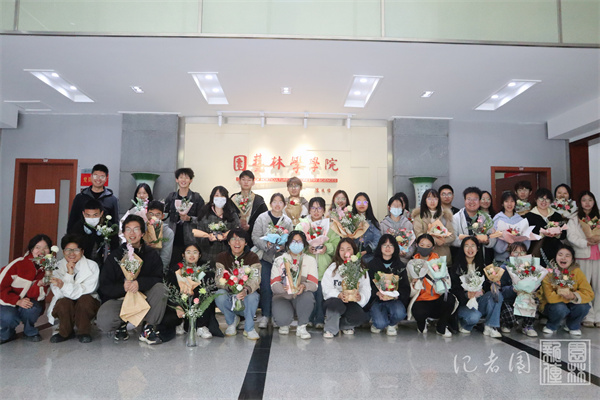 在了解花艺知识与相关插花手法后,同学们开始用分配的花材创造自己的插花作品。同时,工作人员一一指导同学们的问题,并亲手演示如何包花。作品完成后,参与插花活动的所有同学执花合影留念。