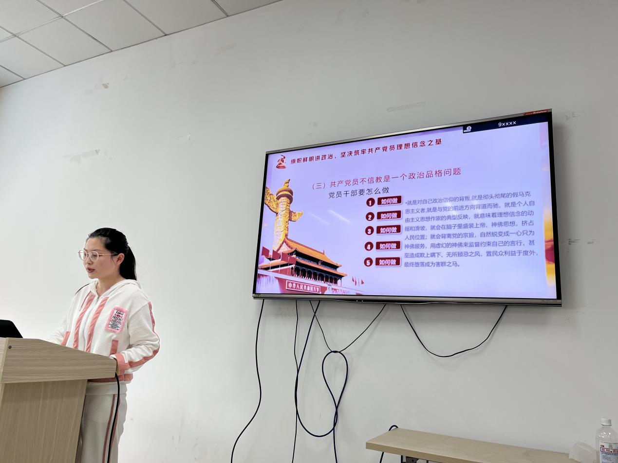 会议伊始,在园林南楼七楼第一党支部宣传委员余子怡同志的带领下,园林南楼七楼第一党支部于南楼721共同进行党员不能信教的学习。余子怡谈道:“身为党员,我们要信念坚定,不能信教”。随后,在支部委员唐雯璐带领下,与会党员一起学习了雷锋精神,唐雯璐认为,作为党员,我们要走在群众的前面,乐于奉献,勇于“探险”,敢于拼搏。