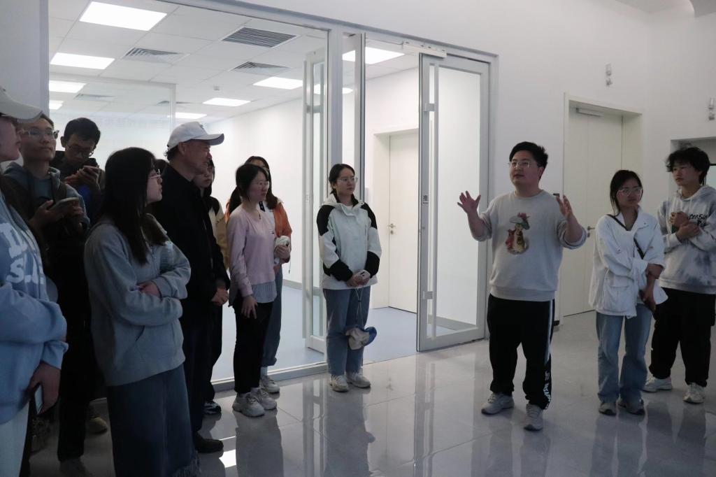 随后,在研究院工作人员的引领下,师生一行参观了研究院的各大公共平台:生物微观结构研究平台、质谱分析平台、人工气候室、超算中心、智能温室以及办公室、会议室、实验室及博雅文化长廊等。生物微观结构研究平台主管赵珺向师生介绍道:“冷冻电子显微学技术是目前最重要的结构生物学手段之一,蛋白质冷冻电镜平台是北京大学现代农业研究院的核心平台之一。”为满足高通量和高可信度分析农作物蛋白质组和代谢组的需求,现代农业研究院为质谱分析平台配备了一系列先进精密的质谱分析设备;平台重点开展蛋白质组学和代谢组学分析技术与作物育种研究相结合,为现代农业基础研究提供分析技术支撑。