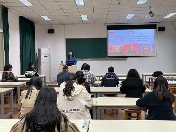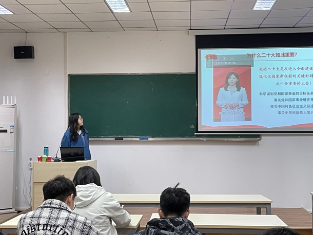 王梦佳同志向各位同志讲解到,“党的二十大是在进入全面建设社会主义现代化国家新征程的关键时刻召开的一次十分重要的大会”。王梦佳从实践成就、理论遵循、使命任务、行动纲领、重要保障与使命担当等几个方面展开介绍。她强调,要学好用好习近平新时代中国特色社会主义思想的世界观和方法论。