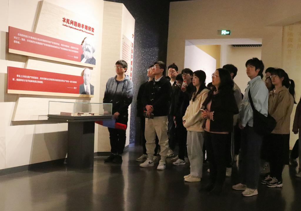 随后,师生在讲解员的带领下进入了农讲所陈列馆参观学习,在半个小时的参观过程中,围绕农民革命思想这一主题,师生进行了深入地交流和讨论。“在右倾主义占指导地位的时代背景下,毛泽东通过细致的调查研究,提出组织农民起来革命的思想。正是因为在这种正确思想的指引下,才能凝聚中国土地上最广大的力量,才能战胜革命道路上的一切困难。”植科院尹良芬老师结合时代背景,向同学们阐述了思想的力量。“当今时代依旧需要思想指引。习近平新时代中国特色社会主义思想是从新时代中国特色社会主义全部实践中产生的理论结晶,是推动新时代党和国家事业不断向前发展的科学指南,是引领中国、影响世界的当代中国马克思主义、21世纪马克思主义。作为新时代党员,我们应该深入把握贯彻在其中的世界观和方法论,用新思想指导实践,争做新青年,建功新时代!”来自茶学一支部的雷震东同学谈了自己的认识。