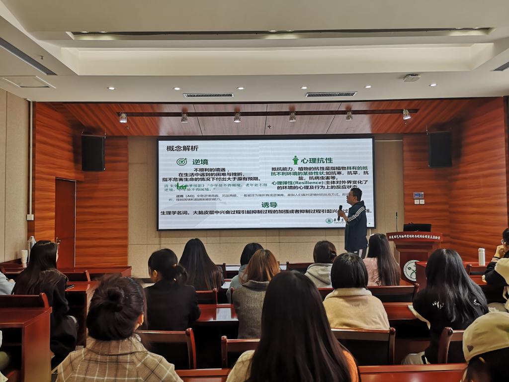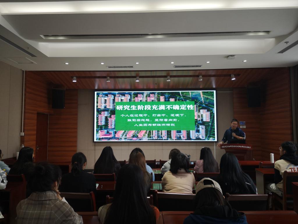 会议伊始,研究生辅导员肖晗老师以“逆境诱导心理抗性的思考与启发”为主题进行理论宣讲。他强调:“压力事件是客观的,而感受是主观的。我们自身的认知决定了我们心里逆境的程度。因此希望同学们在个人过程中、打击中、逆境下,都能够跌倒后爬起,坚持向前,记住人生因为韧性而精彩。”