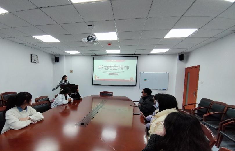 团支书何溢同学向大家介绍了两会的相关议程,带领全体同学回顾了习近平总书记的两会时间。最后同学们观看了两会视频,深刻领悟了“两个确立”的决定性意义,并增强“四个意识”,坚定“四个自信”,做到“两个维护”,全面学习贯彻二十大精神。