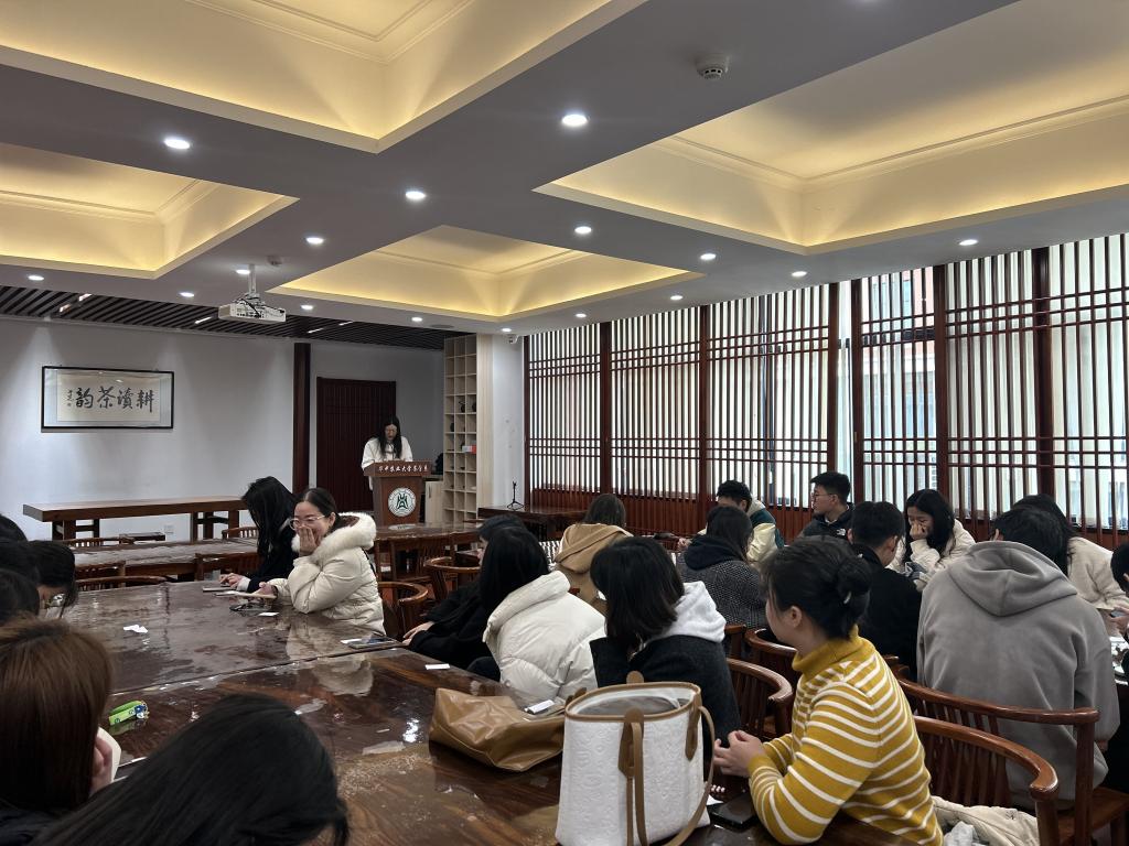 2023年2月17日,2022级茶学班全体硕士研究生在八八看球-在线看球直播网站 北楼耕读茶室开展“开学第一课”主题班会。会议由班长刘淑英主持。