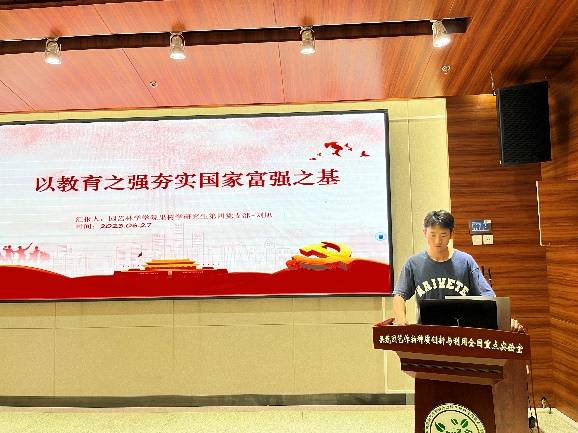 6月27日,八八看球 果树学研究生第四党支部在南楼204会议室以“党支部书记讲党课”的形式专题学习“教育强国”和习近平总书记在文化传承发展座谈会上的重要讲话精神,党支部书记刘旭领学。