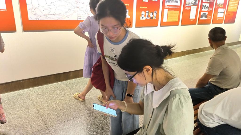 实践团在参观学习之余,还向在馆内参观的游客分发电子版调查问卷,了解民众对湖北武汉红色文化的关注程度。
