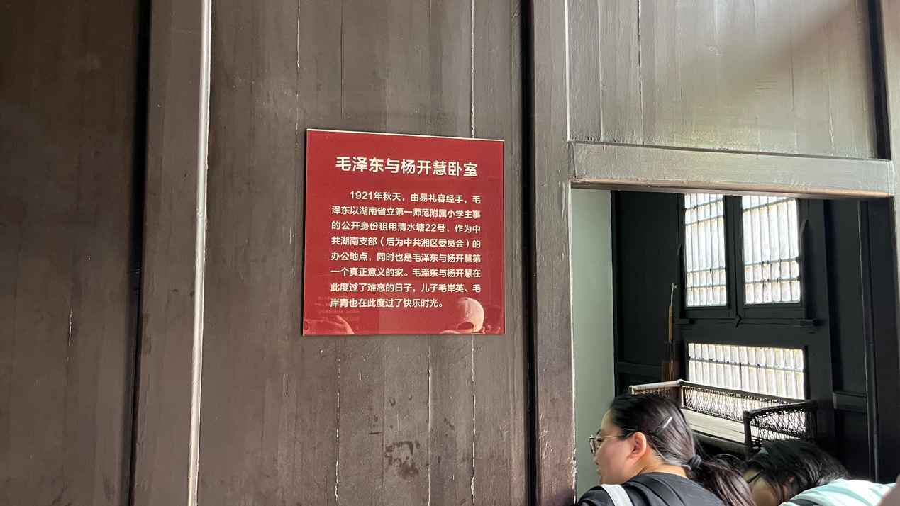 在讲解员的引领下,实践队员来到杨开慧故居,回顾毛主席与杨开慧在故居学习、生活、革命的点点滴滴。大家认真聆听解说员介绍,缓步观看,驻足深思,感受伟大领袖矢志不渝的政治信仰,悟心忧天下的家国情怀,庄重肃穆的纪念馆中陈列的文物带领师生们穿越时空,仿佛回到了那段筚路蓝缕、烽火硝烟的岁月。
