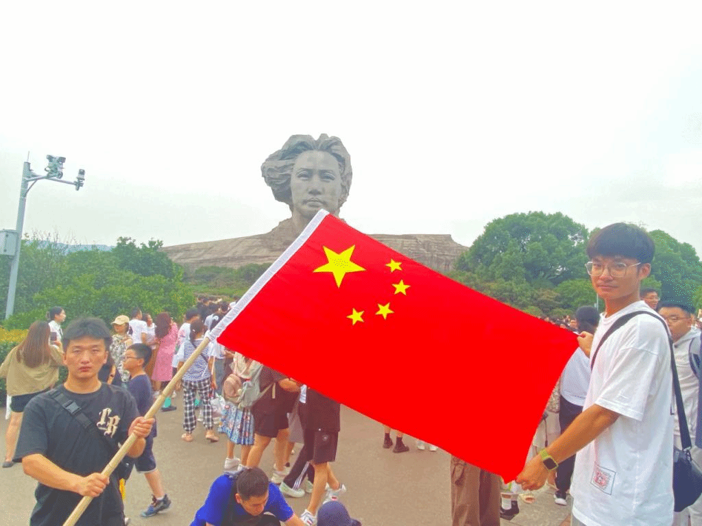 8月25日下午,实践团队第一站选择参观调研橘子洲头。经中共中央办公厅批准,毛主席116岁诞辰时,橘子洲修筑了当今中国最大的一座伟人纪念雕像——青年毛泽东艺术雕塑。