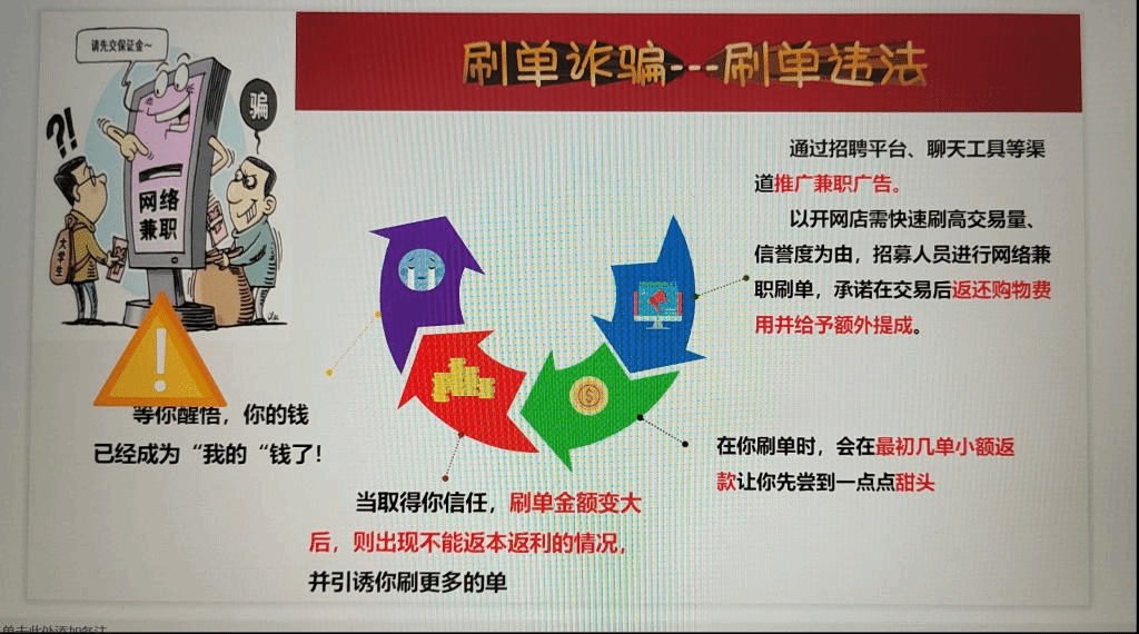 会上,任泽茜向同学们普及了防范电信网络诈骗的知识。带领大家了解什么是电信网络诈骗、高校常见电信网络诈骗类型、如何防范电信网络诈骗、遭遇电信网络诈骗怎么办。最后班长任泽茜号召大家在日常生活中要提高警惕,认真学习相关知识,擦亮眼睛谨防遭受财产损失。