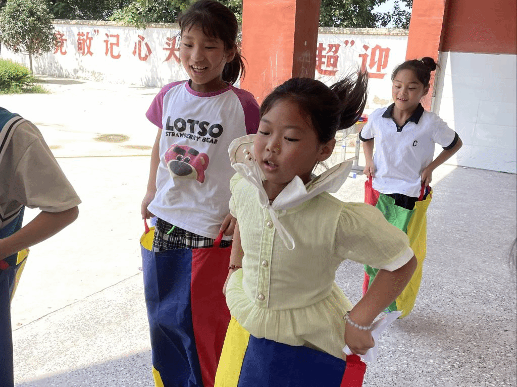 在第一周周末还举办了小型趣味运动会,鼓励每一位孩子表现自我,既理解“文明其灵魂”,又体会“野蛮其体魄”。此外,志愿者们寓教于乐,设置了如大风吹、盲道体验、袋鼠跳等多种多样的娱乐项目,在游戏中教会孩子们增强自信、表达自我、理解他人、传递快乐。