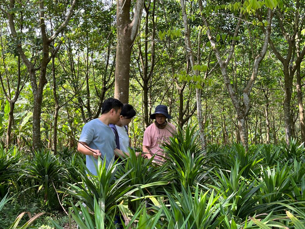 实践团在琼海市参观到了规模化林下种植斑兰叶的产业基地,并就林下种植为基地管理人员答疑解惑并提供合理化建议和指导,助力斑兰叶产业健康发展。