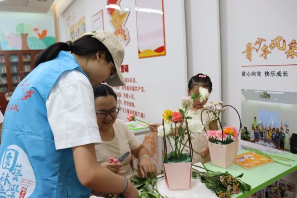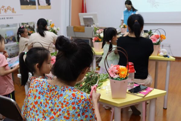 【核心提示】9月10日下午三点,八八看球 张瑜服务队赴玫瑰湾群众活动驿站开展了第二十六期“五育并举,科普‘瑜’你”活动,活动以“香绕指尖,情暖心间“为主题,为15对社区亲子带来了生动的花卉科普与插花艺术课堂。