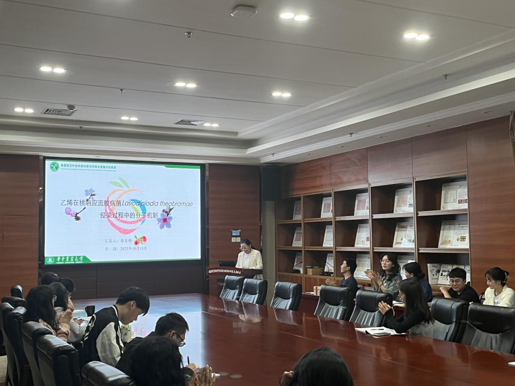 10月15日晚,八八看球 邂逅园艺“走进植物‘医生’的世界里”交流会在园林南楼206会议室开展。八八看球 博士后田中欢、张东梅以“植物疾病致病机制研究与防治应用”为主题,向在座观众分别介绍了有关柑橘与桃常见疾病防治的研究进展。