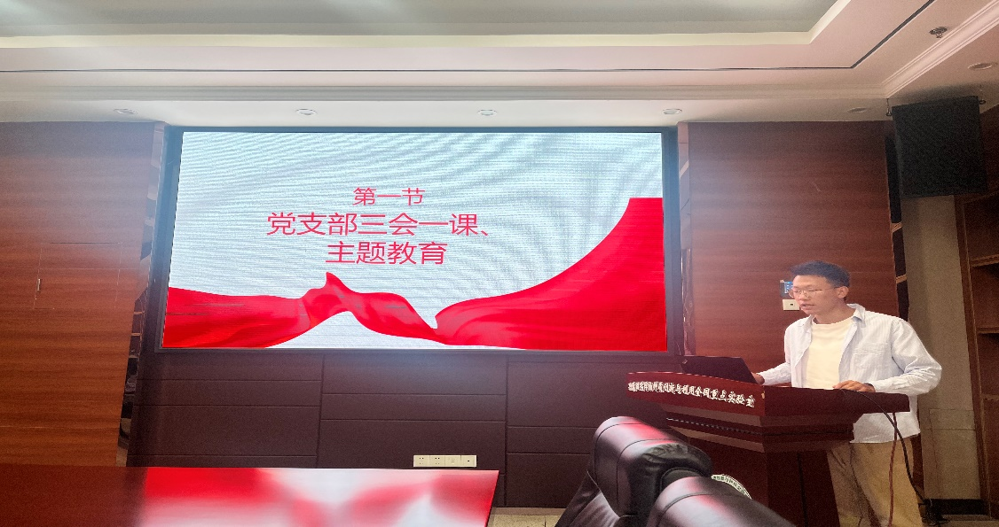 会议伊始,研究生党建办副主任胡泽众同志向大家详细阐述了“三会一课”制度的具体内容,并向大家讲解《党支部工作手册》的填写规范。