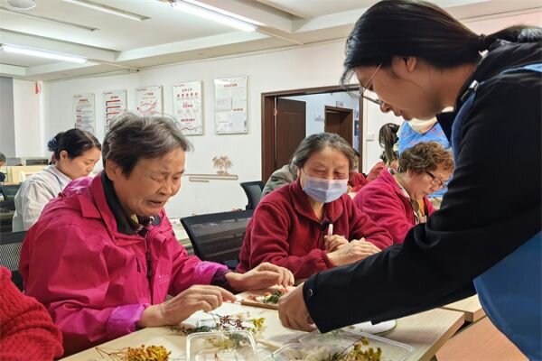 科普讲解过后,齐金晨为老人们讲解了干花拼贴团扇的制作技巧,老人们在志愿者的帮助下亲手制作拼贴团扇,认真细致地完成了自己的干花拼贴团扇作品。体验活动结束后,来自园林2202的志愿者文娅妮总结道:“团扇取‘团团圆圆,和谐美满’之意,干花又称为永生之花,这是非遗与自然美学的碰撞,希望通过此次活动,老人们能够玩的开心,同时在生活中收获幸福美满。”