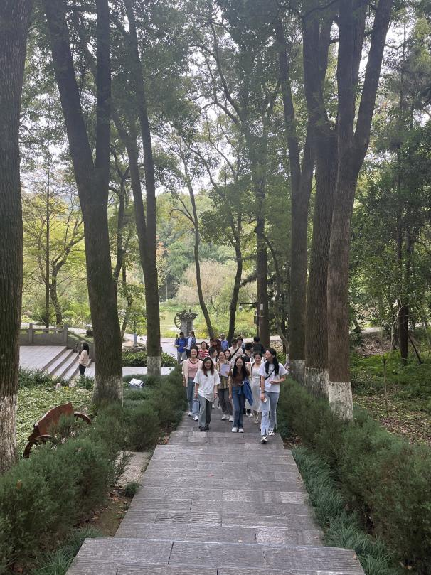 当天下午,2023级林学学硕班的同学来到了古隆中景区。因诸葛亮“躬耕陇亩”、刘备“三顾茅庐”引发《隆中对策》,隆中被世人称为智者摇篮,三分天下的策源地。进入景区大门,映入眼帘的就是上刻着“古隆中”三个字的石牌坊。两边刻着杜甫的诗:“三顾频繁天下计,两朝开济老臣心。”还有诸葛亮的古训:“淡泊明志”和“宁静致远”。同学们跟随着导游的步伐先后参观了躬耕田、小虹桥、隆中书院、武侯祠、三顾堂、诸葛草庐以及六角井,在导游的讲解下,感受到了古隆中景区浓厚的历史文化内涵。
