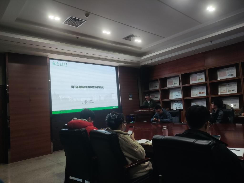 会议开始,杜泽臻博士为同学们讲解了图形基因组的原理和起源。他的汇报共分为六个方面,包括“性状定位的流程”、“泛基因组的出现与发展”、“图形基因组在人类和植物中的应用”、“图形基因组应用在植物中存在的问题”、“一个基于Ensemble的图形基因组解决方案(EVG)”以及“一个从头开发的图形基因组解决方案(Varigraph)”,汇报内容环环相扣,生动形象地阐述了图形基因组在植物领域的应用和分析效果。