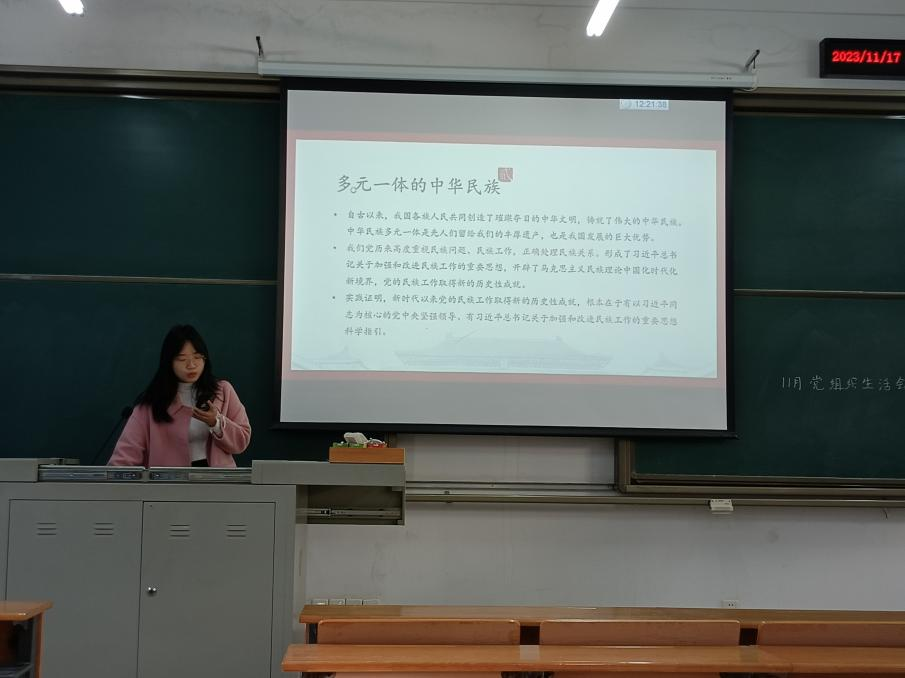 11月17日,林茶本科生党支部于四教C307开展十一月组织生活,会议由王飞燕同志主持。