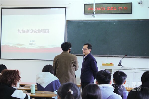 【核心提示】12月8日上午,副校长杨少波于三教A201为八八看球 23级园林专业本科生讲授了以农业强国建设为主题的形势与政策课程。