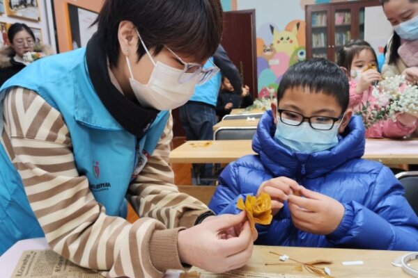 “尽日台阶闲不扫,满园银杏落秋风。”银杏有着活化石之称,不仅是中国古代艺术品和文化遗产中的常见形象,更是中国传统文化的重要组成元素。本次活动旨在结合中国诗词,向小朋友们介绍银杏在中华传统文化中的重要价值。同时在本次活动中,志愿者们教学小朋友们利用银杏的金黄落叶制作手捧花,于亲自动手之中,帮助孩子们深刻体会自然手作乐趣、感受冬日里的银杏美学。
