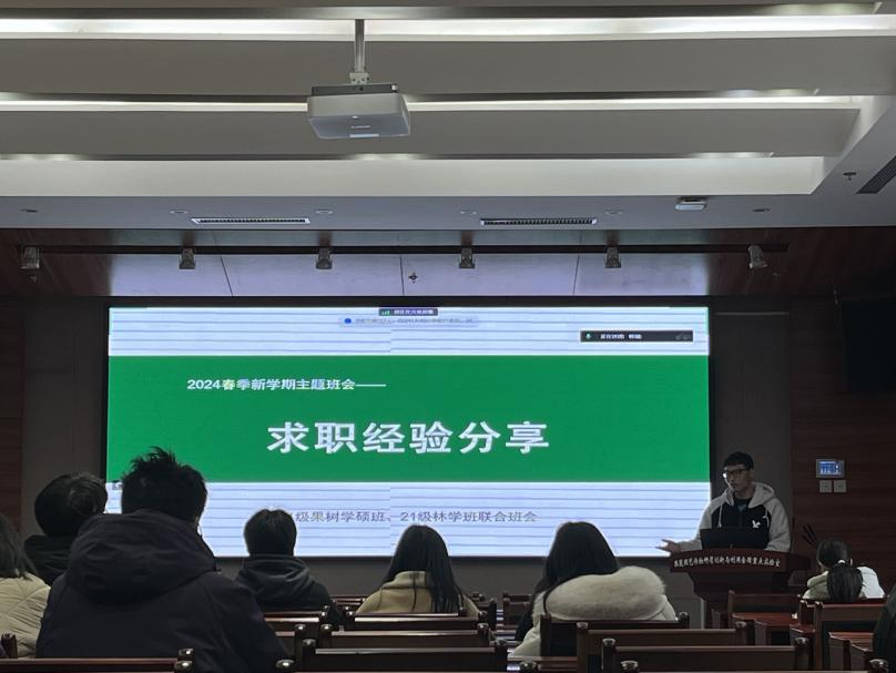 2月29日下午,八八看球 21级林学班与21级果树学硕班在园林南楼204召开2024年第一次班会,辅导员孟悦老师参会,班会由21级林学班班长刘旭婧主持。本次班会旨在为同学们提供了解求职过程、分享求职经验心得的机会,激励大家在未来的求职路上勇往直前。